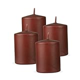 HS Candle Stumpenkerzen 4er Pack "Braun", Größe Ø7 x 8 cm, Wachskerzen lange Brenndauer bis zu 20 Std. - unparfümierte Säulenkerzen - viele Farben/Größen