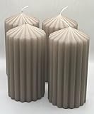 Løgum Kloster dänische Blockkerze Stumpenkerze ohne Duft 4-er Set mit Rillen Brenndauer ca. 39 Std., Sondergrößen ca. 50 Std (braun)