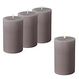 Echtwachs Stumpenkerze 10 x 6 cm geriffelt 4er Set - grau - Advents Kerze unparfümiert ca. 27 Stunden Brenndauer - Weihnachten Tisch Deko Kerze Blockkerze Zylinderkerze Säulenkerze