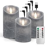 AnnSpa 3 Set Led Kerzen Aufladbar mit Fernbedienung, Wiederaufladbare Kerzen Flammenlose Echtes Wachs Flackern Moving Wick Yellow Light Pillar Candles mit Timerfunction für Geschenke - Grau