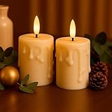 Ideen mit Herz LED-Kerzen mit Echtwachsbeschichtung | 2 Stück | cremefarben | Weihnachten | warmweiß | realistischer Flammen-Effekt | Timer-Funktion | batteriebetrieben (mit Wachstropfen)