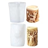 2pcs Weihnachts-Silikonformen 3D Zylinder geprägte Elch-Weihnachtskerze-Formen Nicht-Schichtkerzen, so